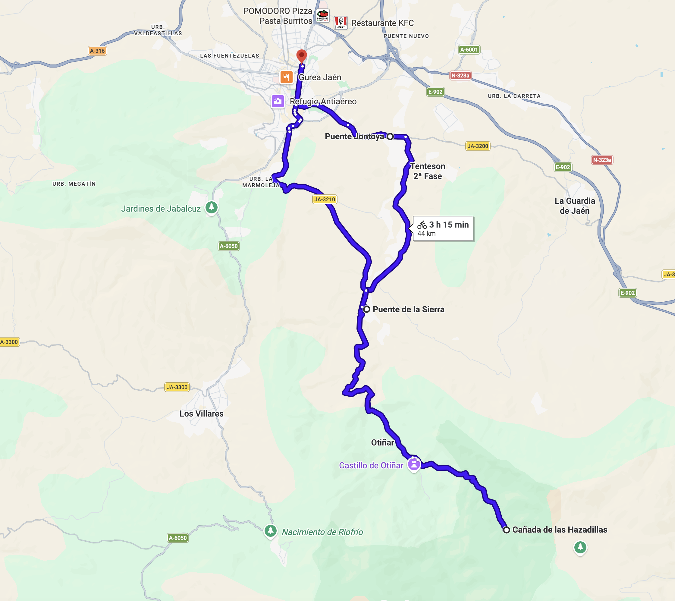 Jaén – Puente Jontoya – Puente de la Sierra – Cañada de las Hazadillas (Parada) – Puente de la Sierra – Jaén